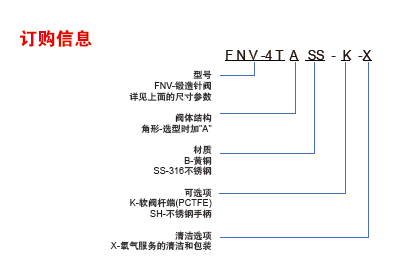 FNV系列針閥由鍛造閥體和整體閥蓋組成,設(shè)計(jì)有特氟隆(PTFE)和金屬片的閥桿填料。這使閥門從真空到最大操作壓力都能提供很高的密封性。FNV系列有直形和角形兩種結(jié)構(gòu),有NPT螺紋和雙卡套兩種連接方式。符合行業(yè)標(biāo)準(zhǔn)的嵌板安裝使此系列閥門在很多應(yīng)用中成為最經(jīng)濟(jì)的解決方案。標(biāo)準(zhǔn)金屬閥桿和可供選擇的軟閥桿端可以在多種壓力范圍下提供精確的測(cè)量。FNV系列閥門可以選擇氧清潔服務(wù)。